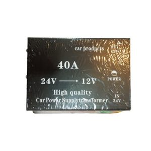 در مبدل 40 آمپر کاهنده 24 به 12 ولت، در واقع ولتاژ ورودی 24 ولت 2 برابر ولتاژ خروجی 12 ولت است و اما جریان نصف خروجی است. به این معنا که اگر در خروجی 40 آمپر داشته باشیم ( البته کاهش 35% درصد را نیز در نظر بگیرید ) در ورودی 24 ولتی باید 20 آمپر داریم. در این مبدل برای محافظت از جریان ورودی از یک فیوز 20 آمپر استفاده شده است.